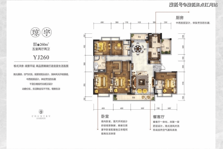 五室两厅双厨三卫双阳台且带保姆房市区稀缺的山景洋房大平层,精装修交付,中西双厨,带保姆房,9.5m景观阳台。得房率高达87%,实际得房率约94%(含赠送约18㎡)