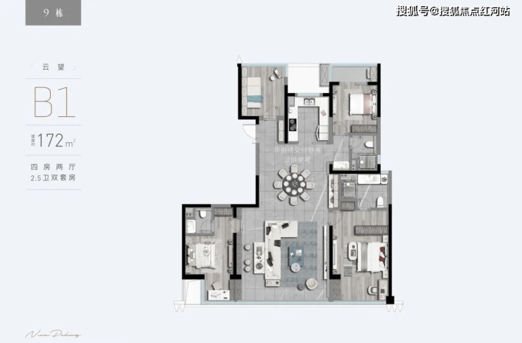 B1云望:建面约172㎡ 四房两厅2.5卫双套房