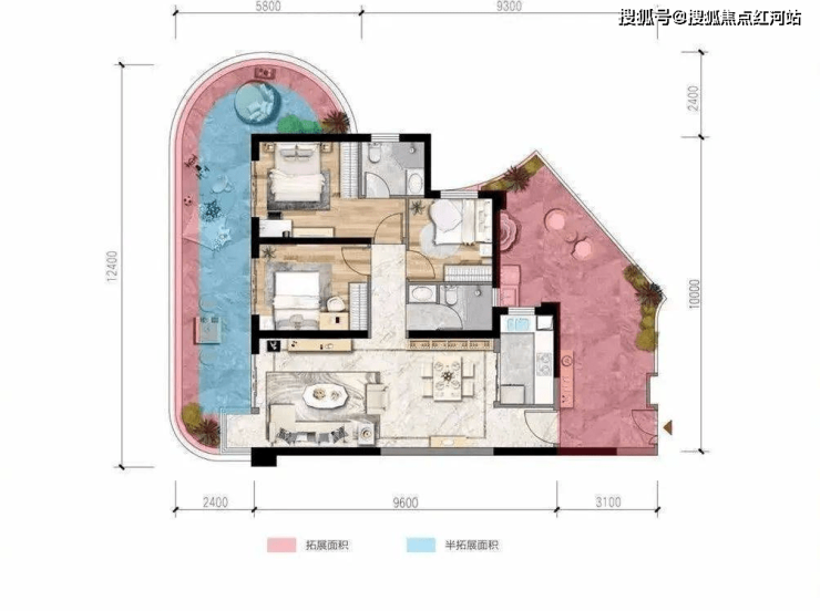 B户型:建面约88㎡;实得面积约124㎡