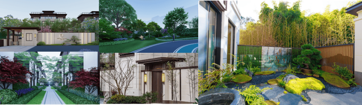 ②园为景:园区景观采用春夏秋冬四季不同植物搭配,形成层次丰富的植物组景,让业主享受一步一景、四季有景的院落生活。