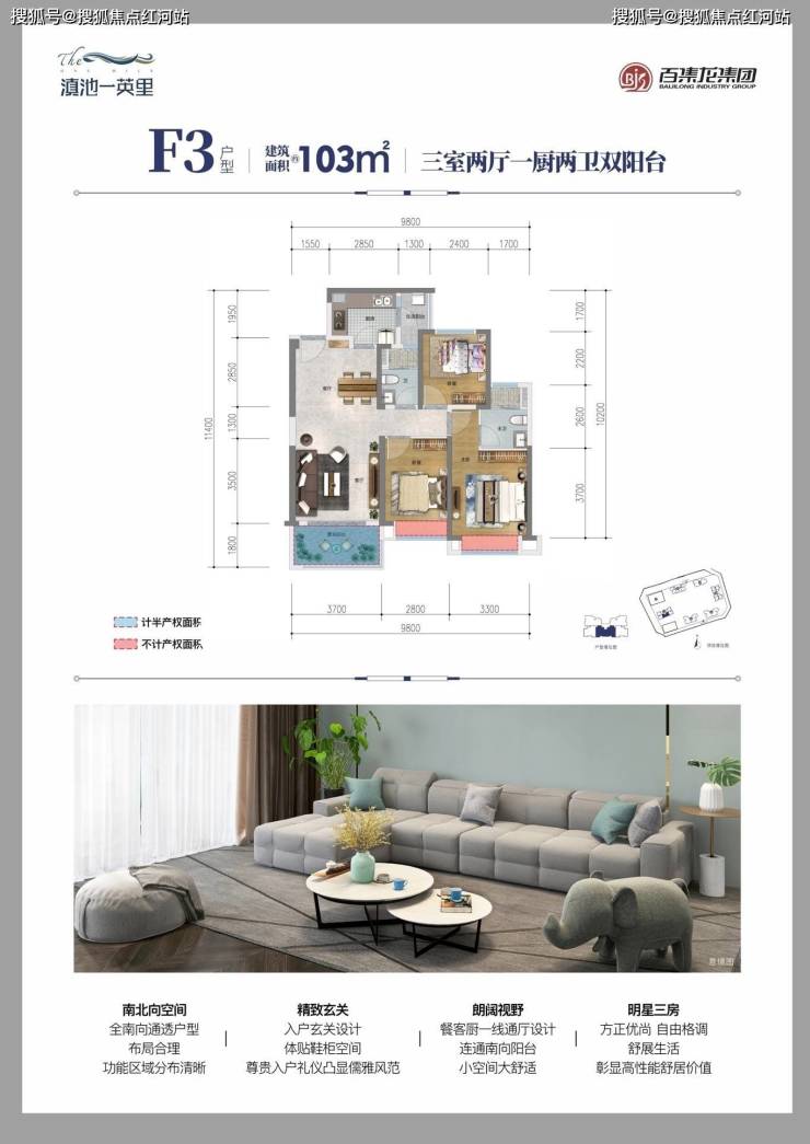 2: 103平三室两卫南向中户可观滇,单价13500-14500楼层15楼以上有房源