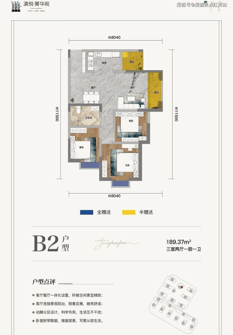 3、低总价小户型:76平两房,89平三房户型,总价72万——99万;