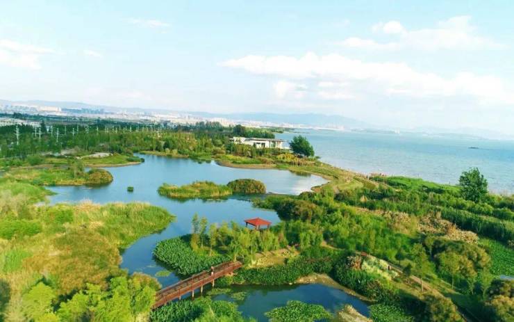 项目毗邻滇池湖畔,坐拥半岛约4750亩生态配套,广普河生态走廊、宝象河两河相汇于滇池,周边约400亩西亮塘湿地公园、约1000亩海东环湖湿地公园、规划中的约1800亩的海东运动主题公园,除此之外,附近还有宝丰湿地公园、五甲塘湿地公园等五大湿地公园环绕,将自然融入生活,为峰层菁英家庭打造舒适安逸的水岸宜居生活。