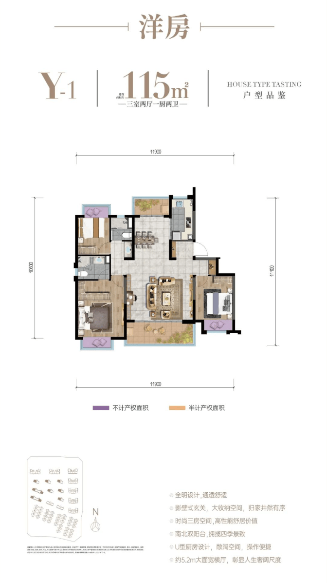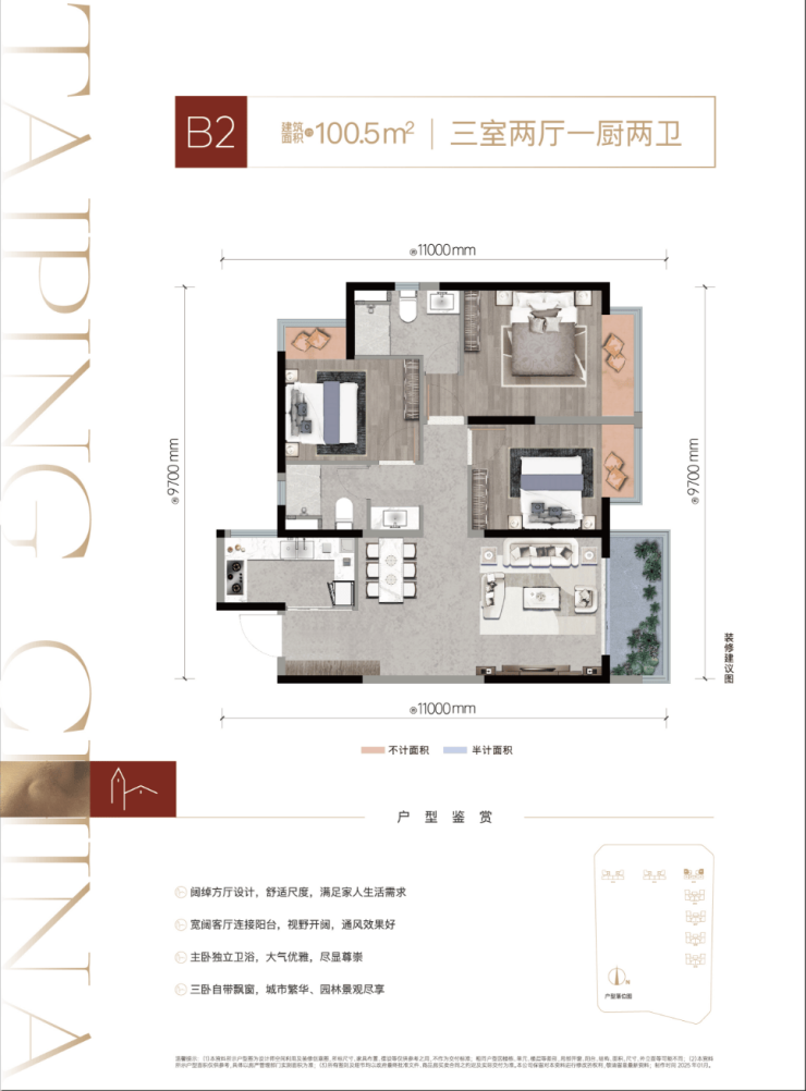 1、建筑面积86-100㎡精装瞰景高层/建筑面积115-135㎡精装板式洋房