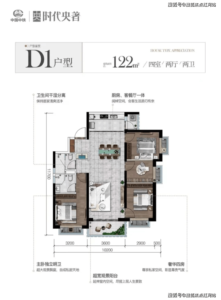 周边同价位竞品多为老旧设计产品,得房率普遍在70%-75%之间,空间利用率低,户型通透度差,楼间距较近,缺乏人性化细节设计,园林规模小、品质一般。而中铁时代央著二期为全新3.5代新规产品,约92%-96%高得房率,远超周边竞品,灵活可变成长空间,最大化利用每一寸空间;采用约11.2米阔尺转角横厅、3开间全南向设计,采光通风俱佳,居住舒适度大幅提升;打造4.35米挑高星级入户大堂,部分楼栋位于小区中芯,阔绰楼间距,兼具私密与舒适,观景视野无遮挡,细节之处尽显品质,产品力全方位优于周边竞品。