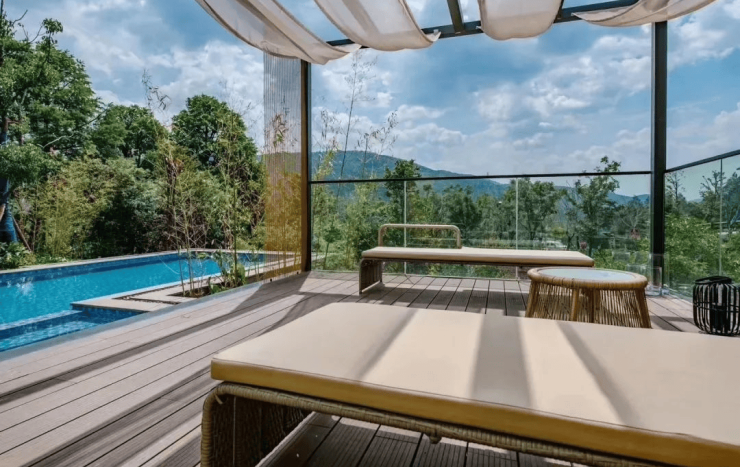 汉华天马山国际温泉度假区拥有天然的温泉资源,富含多种对人体有益的矿物质和微量元素。度假区精心打造了凌崖汤泉,让你在享受温泉滋养的同时,还能欣赏到绝美的山间景色。在寒冷的冬日,泡在温暖的温泉池中,让温热的泉水包裹着身体,感受着疲惫一点点消散,抬头仰望,是湛蓝的天空和连绵的山峦,身心都得到了极大的放松与满足。
