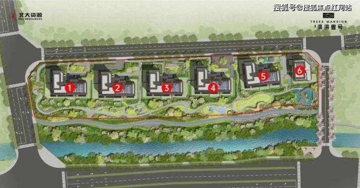 ②内部约2万方隐奢度假园林,充分遵循场地自然基因,将林木、花草、溪谷 、叠瀑……纳入园中,打造专属的前庭(六院)+后院(六幕)+河滨带状公园为一体,融合了自然、人文与全龄活动的一个集生态、休闲、康乐并存的高品质公园式社区。