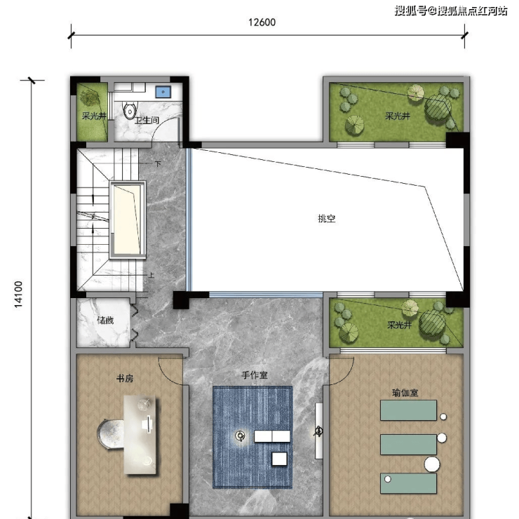 D1 建面约356㎡,露台面积约56㎡,可拓展最大面积约528㎡