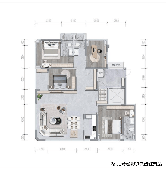 •270°至尊双主卧:双主卧套房皆配明卫、茶寮,阳光私疗愈系统恒常守护。