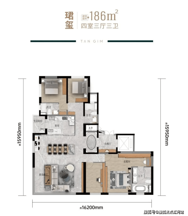 高得房率精装户型,129-186㎡三/四房,全系通透好住