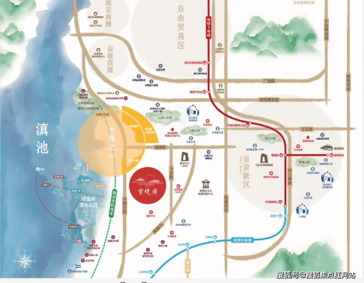 交通配套:临近环湖东路、呈贡高铁南站,地铁1号线、规划有轨电车加持,多维交通畅达全城;教育配套:6所中小学环伺,近享呈贡大学城优质资源,规划4所学校加持;商业配套:上海天地、七彩云南第壹城、万达广场多商圈环绕;医疗配套:昆明市中医医院、延安医院呈贡分院及康养产业齐全;生态配套:一路之隔捞渔河湿地,400米达滇池绿道,800米临海晏古村,五大公园环绕。