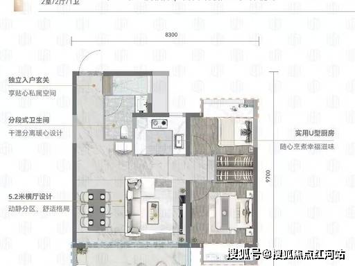 78㎡两房两厅一卫:紧凑温馨,5.2米品质横厅搭配南向双联阳台,小户型也能拥有大尺度,总价门槛极低,适合单身、新婚夫妇过渡,精装交付省去装修烦恼,拎包即可入住。