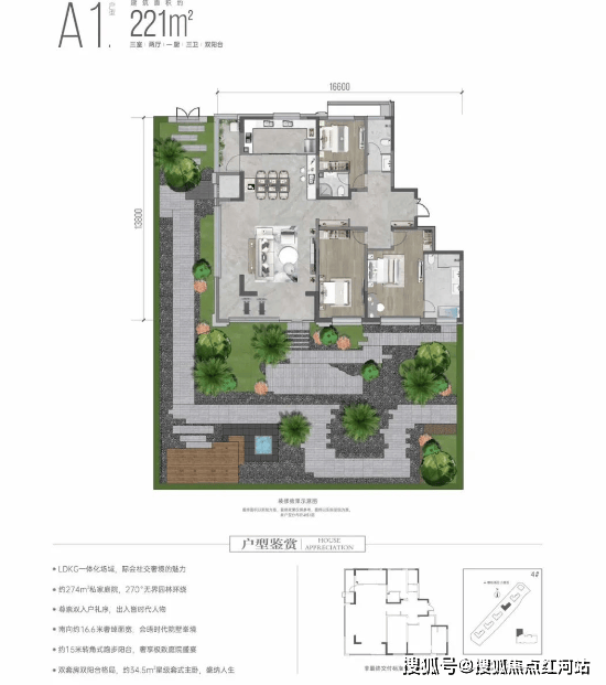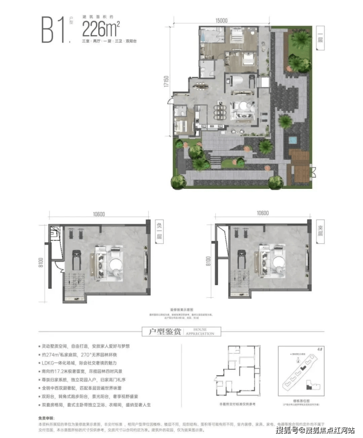 大地叠院:独门独院入户,配备最大约 300㎡的 U 形私家庭院,买一层得三层,全明下沉庭院设计,可打造影音室、健身房等功能空间,实现 “有天有地” 的墅居梦想;