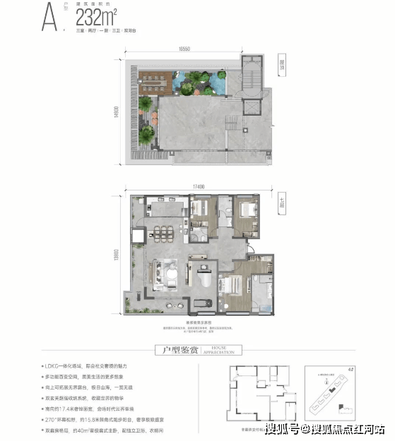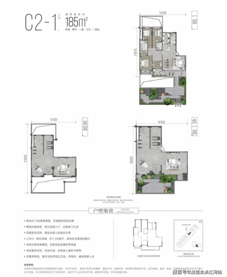 项目主推建面约185-232㎡的全改善户型,涵盖大地叠院、天际平层、天空上院三种形态,兼顾不同家庭的居住偏好: