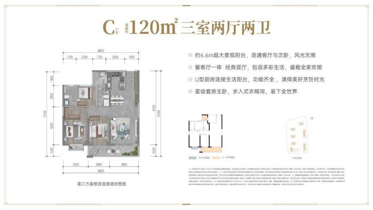 项目推出建面约88-130㎡带装修平层产品,包括三室、四室产品,户型均为全明空间设计,尺度舒适宽敞,大部分户型带有宽景阳台及套房主卧设计,带装修交付,入住更省心。