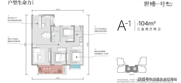 105-120㎡刚需改善户型,紧凑实用、南北通透,适配年轻家庭;120-150㎡舒适改善户型,空间阔绰、采光优越,适配三口之家;150-175㎡高端改善户型,大面宽、大阳台,适配高端改善、三代同堂,满足不同改善需求。