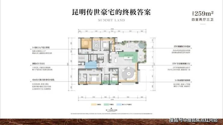 建面 259㎡实得约 333㎡,含 270° 环幕厅、约 53㎡空中花园、42㎡超大主卧套房;以下分别是偶数层和奇数层户型:
