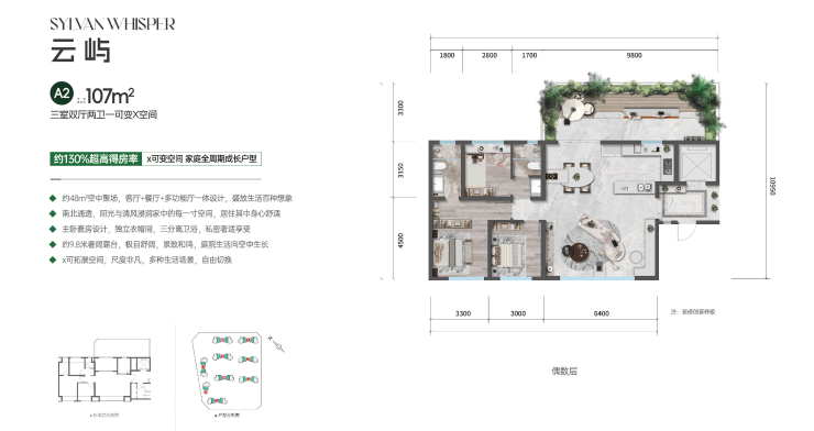 三室两厅两卫一可变空间 130%超高赠送率