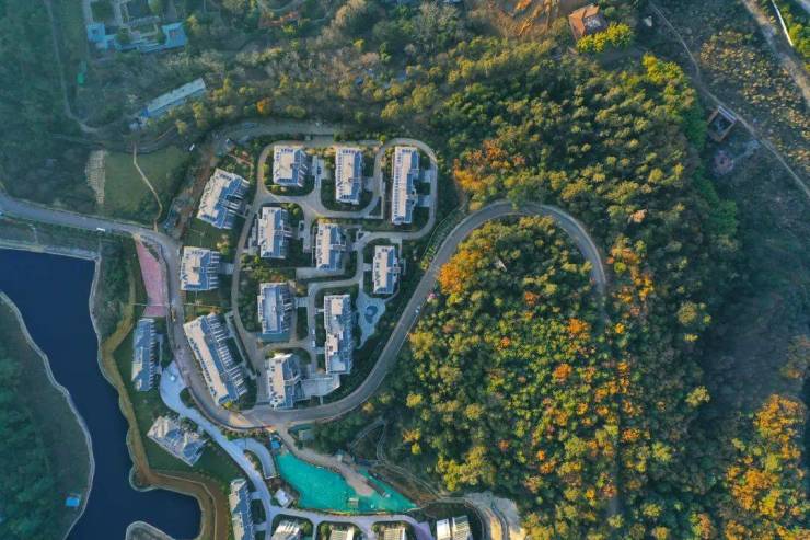 在湖山间生长出生态低密的美学建筑,让风光可以最大限度地通过建筑内部,带来充沛清新的负氧离子,让每一次呼吸,都能汲取山林自然的能量。