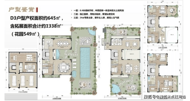 D1(336㎡):10室3厅6卫,南北通透,厨卫全明,双主卧套房,地下三层高拓展;