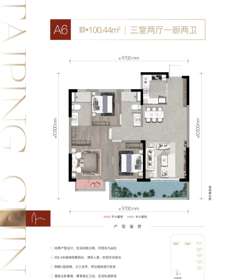 户型设计合理:高层建筑面积约86-117㎡,赋予室内空间优越的采光和开阔的视野。