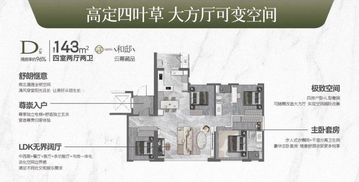 高定版四叶草户型/大方厅可变空间