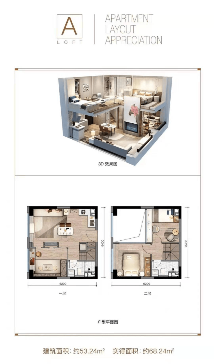 产品面积段:47-57㎡loft公寓
