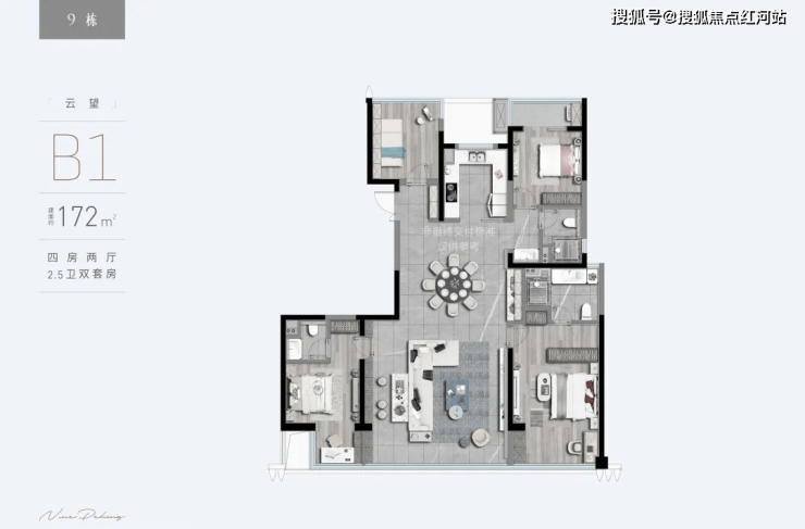 B1云望:建面约172㎡ 四房两厅2.5卫双套房