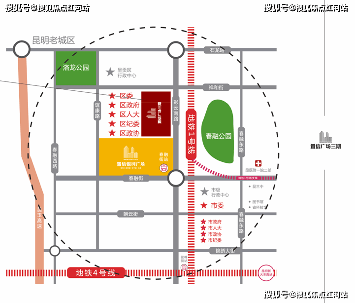 且本项目的地铁站春融街1号线支线经过市政府即可直达昆明新南站,直线距离仅3公里。