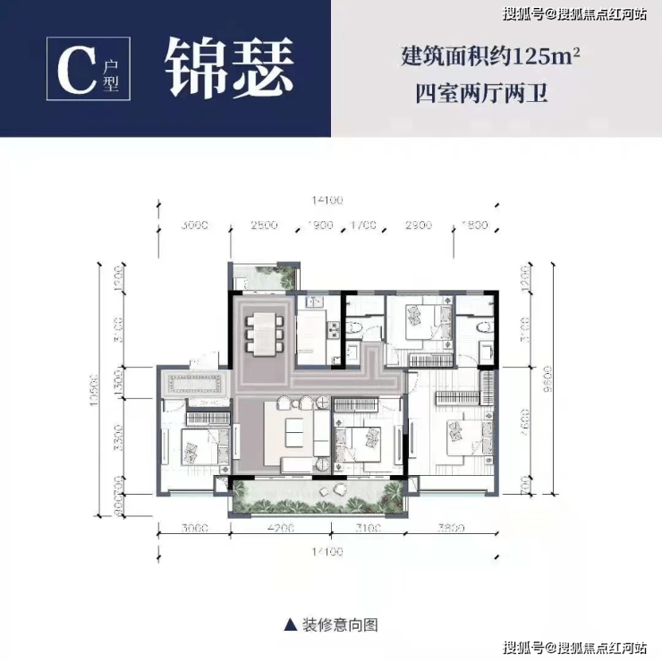 洋房产品户型:110-143m²