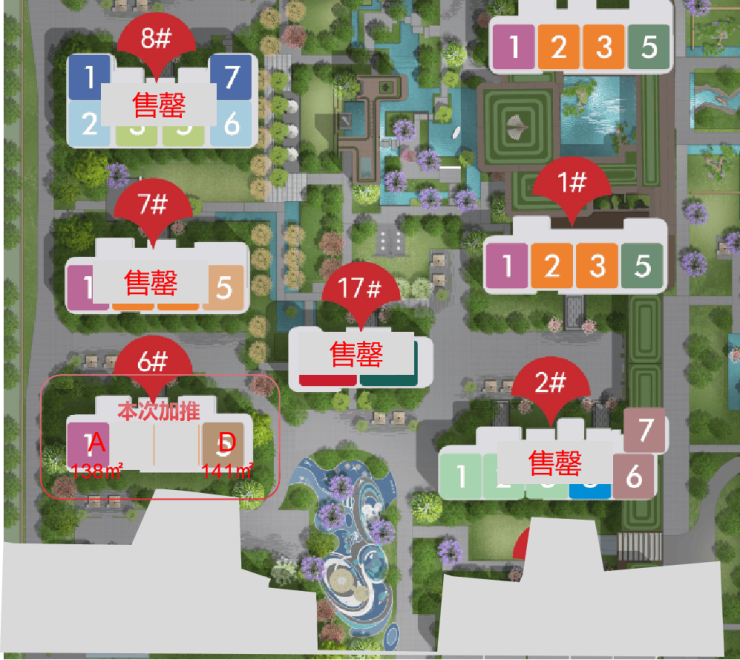 5、总高8F央景洋房,全盘仅此一栋,低密居住舒适度