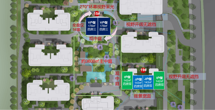 2、靠3600㎡中庭楼王,270°视野采光无遮挡、无敌视野