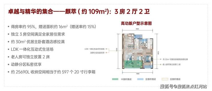 109㎡ 三室两厅两卫:爆款横厅户型,LDKB一体化设计,空间开阔通透,采光视野俱佳,主卧套房私密性强,灵动空间可改造为书房、儿童房,刚改家庭自住过渡首选,居住质感远超同面积段户型。