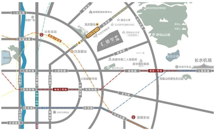 中海汇德里雄踞昆明城芯,占据城市发展的黄金地段。周边交通网络纵横交错,城市主干道贯穿全城,与机场、高铁站紧密相连,多条公交线路和地铁站近在咫尺,日常通勤高效便捷,让您在城市的繁华中自由穿梭。