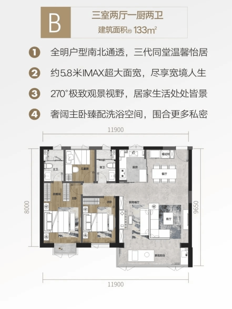 在售户型:93(售罄)/133/179m²