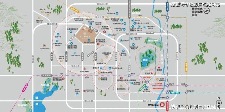 3km 范围内涵盖 11 大市级幼儿园、9 大知名小学、9 大重点中学,1km 内有阳光天使幼儿园、外国语实验小学、昆明市第 24 中学等,全龄段教育资源覆盖,学府气息浓厚。
