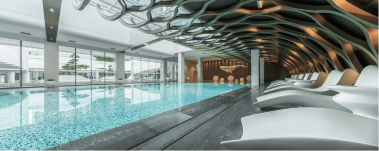 山海湾8号深谙高净值人群社交休闲需求,对标五星级酒店,匠造约4000㎡地下会所,真正把排面拉满。会所配置业主VIP会客室、茶室、儿童阅读室、室内恒温泳池及专属健身房,空间尺度充分满足业主锻炼、会客、品读等需求。
