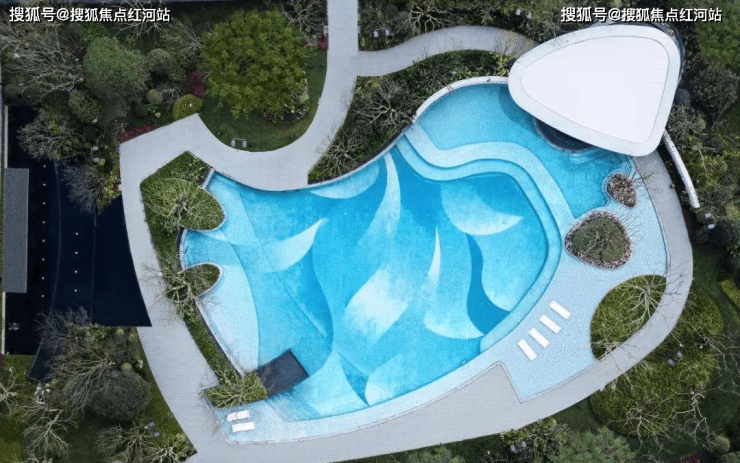 以高端泳池为蓝本,打造首个社区无界泳池。从兰花花瓣进行提取,抽象化处理,简化边缘形状,散落场地之中,成为多层次景观空间。 让家人在起伏的景观韵律中,获得丰富且自在的美好生活日常。