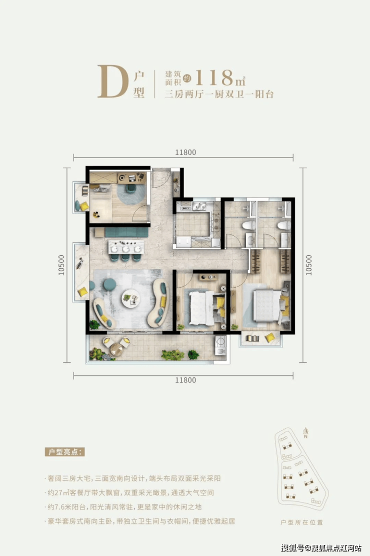 在售建面约88-118㎡臻品端头小户,实景样板间已呈现,户型亮点肉眼可见。所有户型均为方正通透的端头设计,采光通风俱佳,6.3-7.6m超大景观阳台,不仅提升了观景体验,还增加了实用空间,同面积段功能性实力碾压竞品。户型设计科学合理,动静分区清晰,餐客一体布局延伸空间尺度,主卧套房设计保障私密性,空间利用率高,无浪费面积。不同户型适配不同刚需人群,88㎡低总价小三房,96-118㎡舒适三房,满足年轻夫妻、三口之家等不同家庭的居住需求,以刚需价格,享受高品质舒居生活。