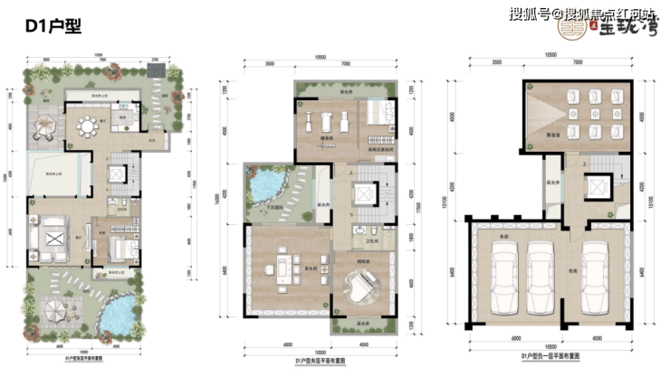 D1户型:证上面积506㎡,实得770㎡,花园约150㎡