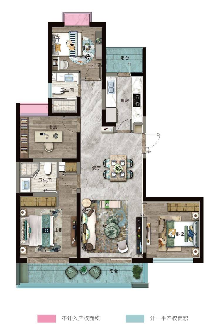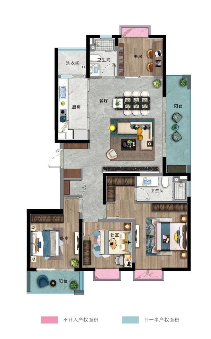 B户型:建面约140㎡,四室两厅两卫