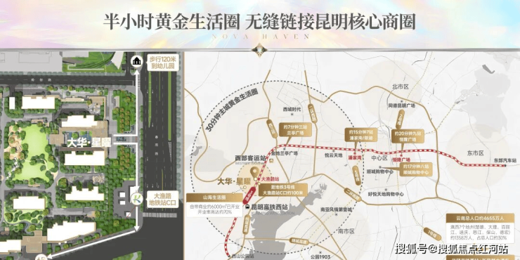 双铁+三高速立体交通,近地铁3号线、昆明西客站(2027年预计投运);全龄优教环绕,规划公办幼儿园;六大公园环伺,核心医疗云集,商圈成熟,配套完善。