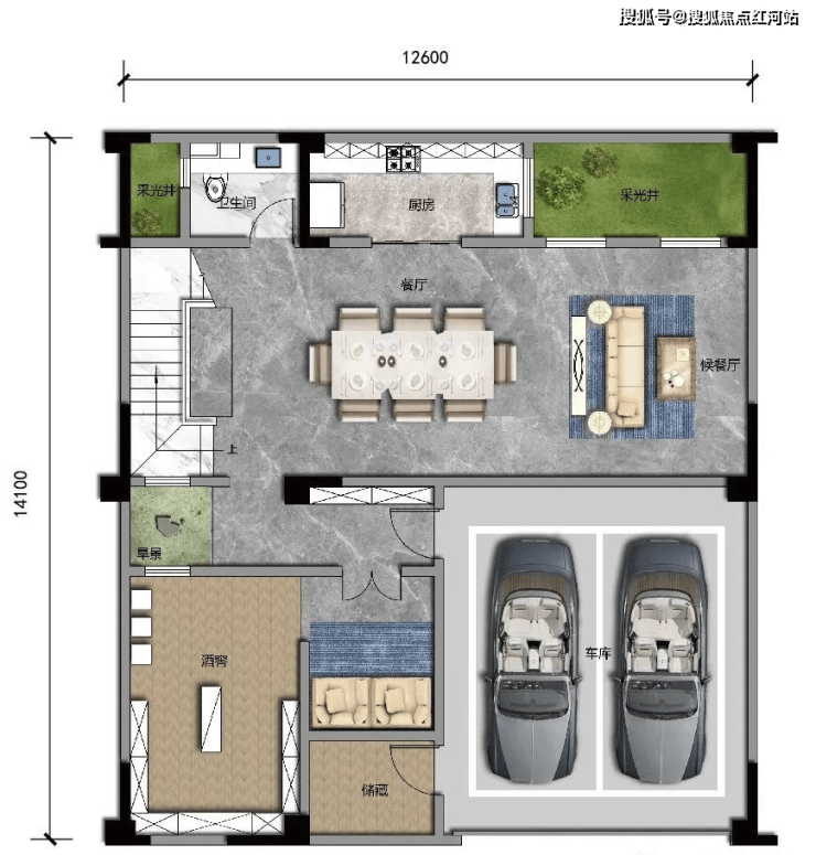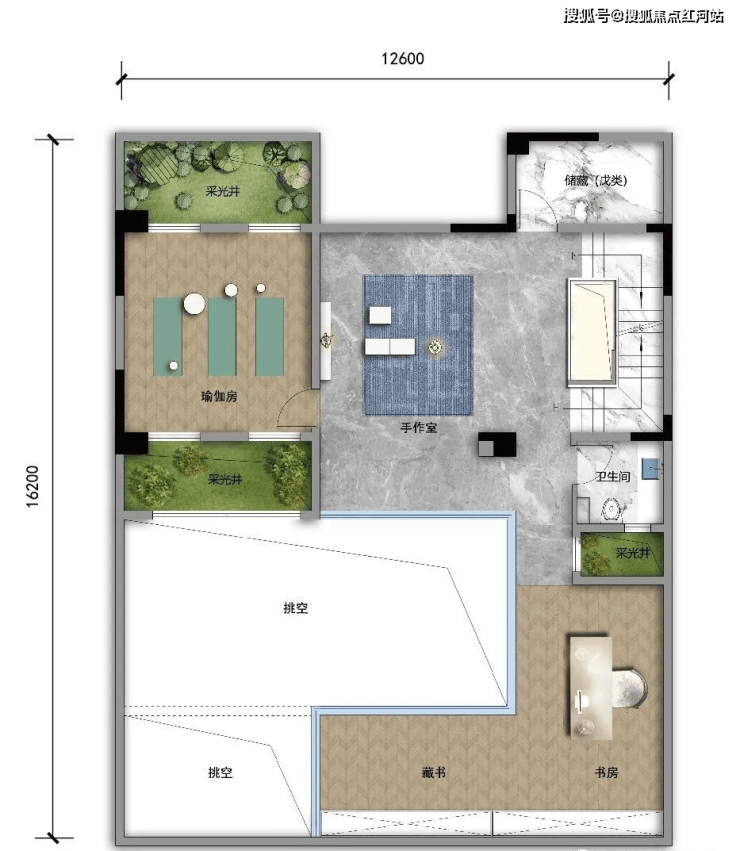 D1 建面约356㎡,露台面积约56㎡,可拓展最大面积约528㎡