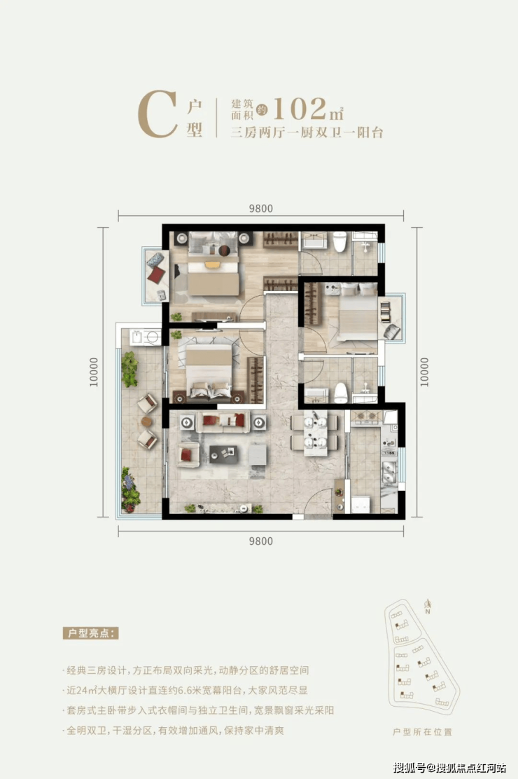 建面约88-118㎡稀缺端头小户,迭代升级,户型方正通透,全能三居设计。88㎡最优性价比,96㎡南向主卧套房,102㎡LDKB餐客一体化,118㎡阔绰大三房,超大景观阳台搭配飘窗,满足不同家庭居住需求。