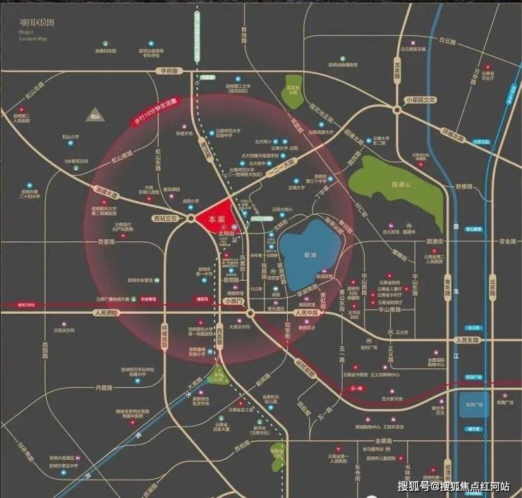 项目位于昆明市五华区一二一大街488号,地处昆明核心主城区,五华区作为昆明发展最早的区域,是云南省人民政府所在地,政治、经济、文化、商业核心汇聚于此;紧邻翠湖,一公里范围内汇集陆军讲武堂、云南大学、云南起义纪念馆卢汉会馆、昆明聂耳故居等众多文化地标,历史文化底蕴深厚;作为昆明一环为数不多的在售新楼盘,且一环内禁止开发,项目成为绝版稀缺资产,地段价值不可复制,备受高净值人群青睐,圈层纯粹。