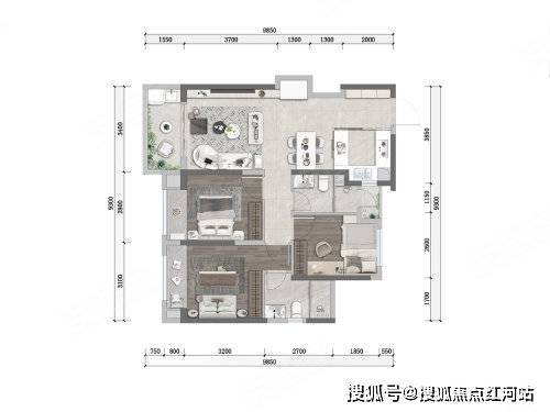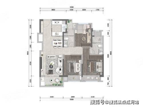 89㎡ 3室2厅2卫:双阳台设计,南北通透,主卧套房(独立卫浴),动静分区清晰,部分端户可看滇