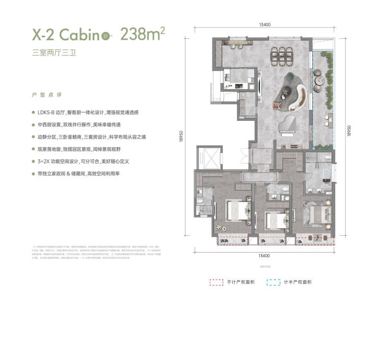LDKS-B餐客厨一体化,空间舒阔,功能多变;大层高、大面宽、大进深阳台,生活无界;独立收纳储藏间。