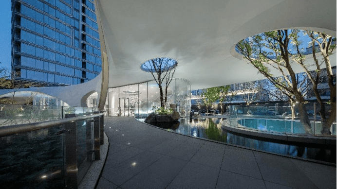 项目也十分注重园林造景与业主生活的实用性互动,以林下空间作为主旋律的光环森林归家廊道;2500㎡阳光草坪上业主专属的小巨蛋阳光会客厅、涌泉边的水波阅读馆;开放式首层架空层,将自然引入室内艺术庭院打造妈咪宝乐园、邻水会所、林间会所等多变互动社交空间…充分满足不同年龄段业主群体的需求,足以看见美的·北京路9號对品质生活的匠心投入。