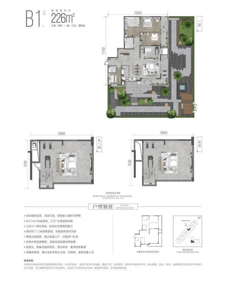 270°U形环绕,约120-360m²私享花园,双玄关独门独院入户,全明下沉花园庭院,买一层享三层