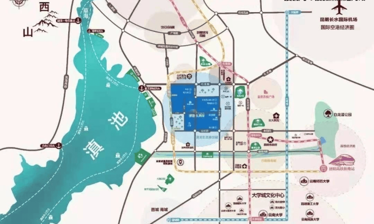 项目周边构建起了三横(石龙路、呈祥街、72号路)四纵(环湖东路、古滇路、花都路、兴呈路)的密集交通路网,为出行提供坚实保障。尤其令人瞩目的是其双地铁环绕的优势,地铁1/2号线近在咫尺,而地铁4号线的古城站C出入口更是直接位于地块内,真正实现下楼即达地铁站口。无论是日常通勤至城市各处,便捷的轨道交通都能让您轻松畅行,高效抵达目的地,无缝对接城市的每一个角落,极大提升生活的便利性与时效性。即使选择公共交通,周边219路、222路、250路、c5路、c7路、d34路、k32路、z29路等多路公交,也能满足您通往主城区及呈贡新城的出行需求。